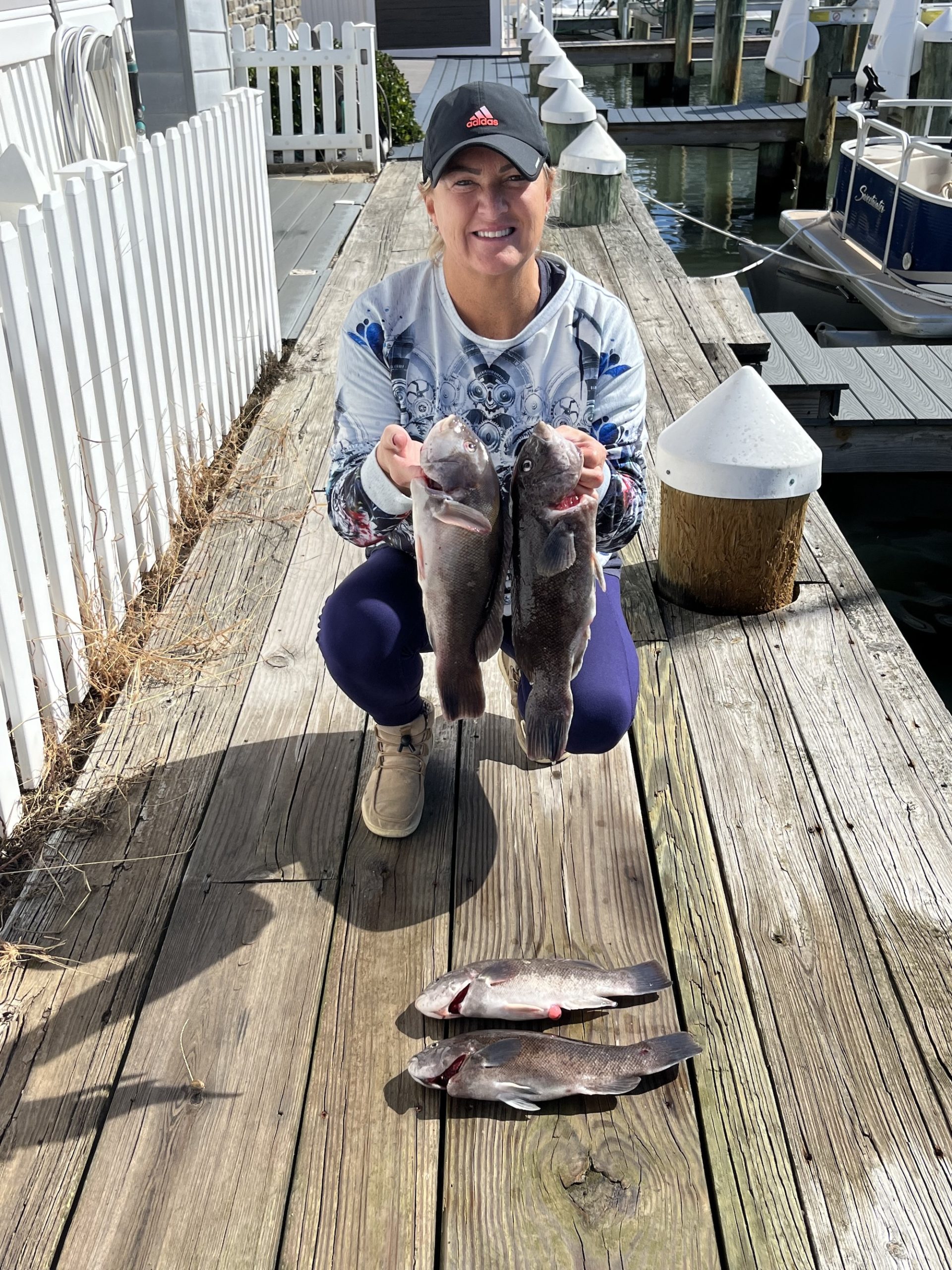 Rich Daiker and Stacey Schindler had a limit of tautog from the south jetty.