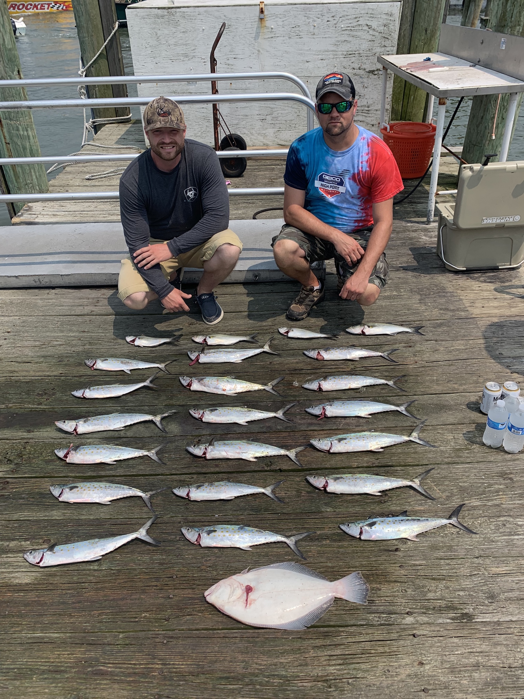 Captain Chase Eberle of Chasin’ Tides Charters had a great day offshore today with a white marlin release, several tunas, some mahi including a 39 pounder and some tilefish. Captain Chase also had trips with flounder and mackerel.