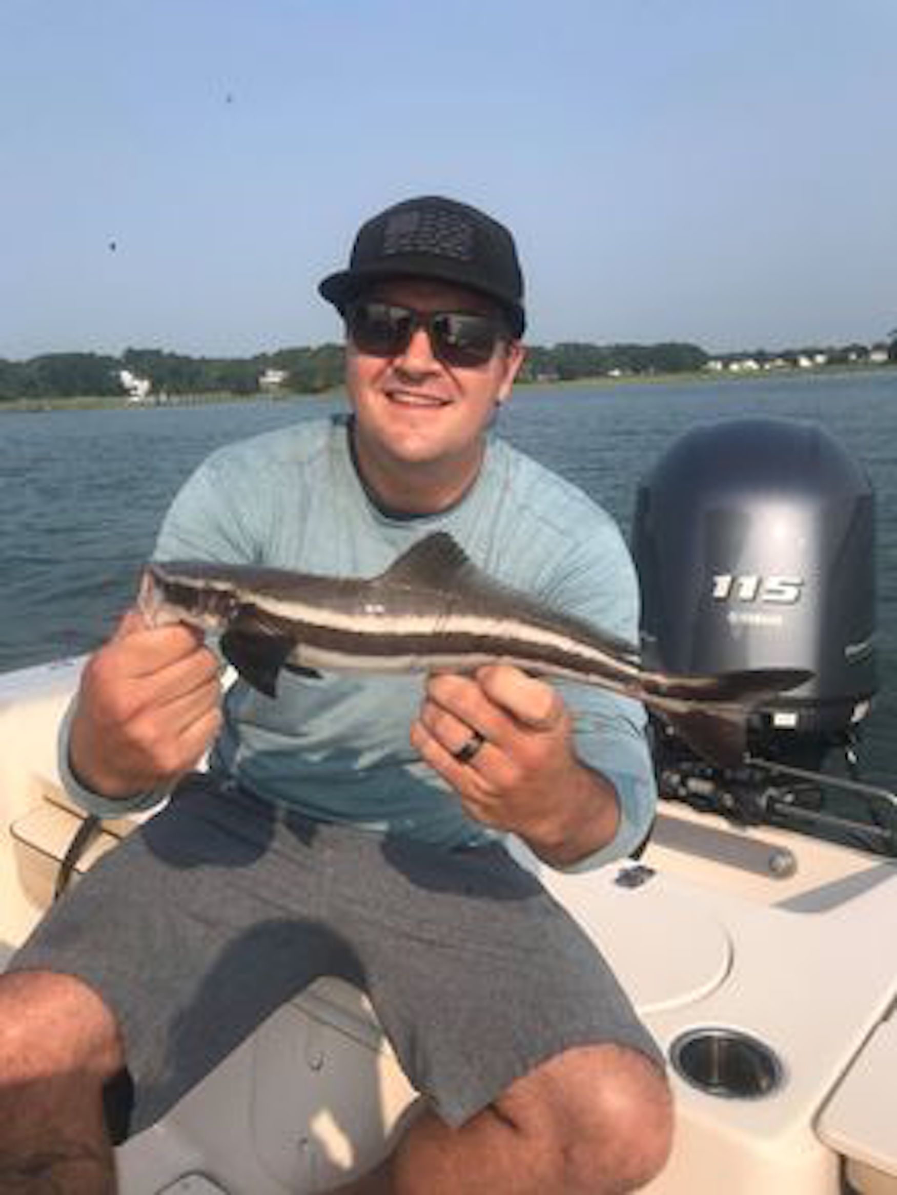 Dustin Axe was drifting a white Gulp behind Assateague Island this morning when he caught this juvenile cobia and released it.