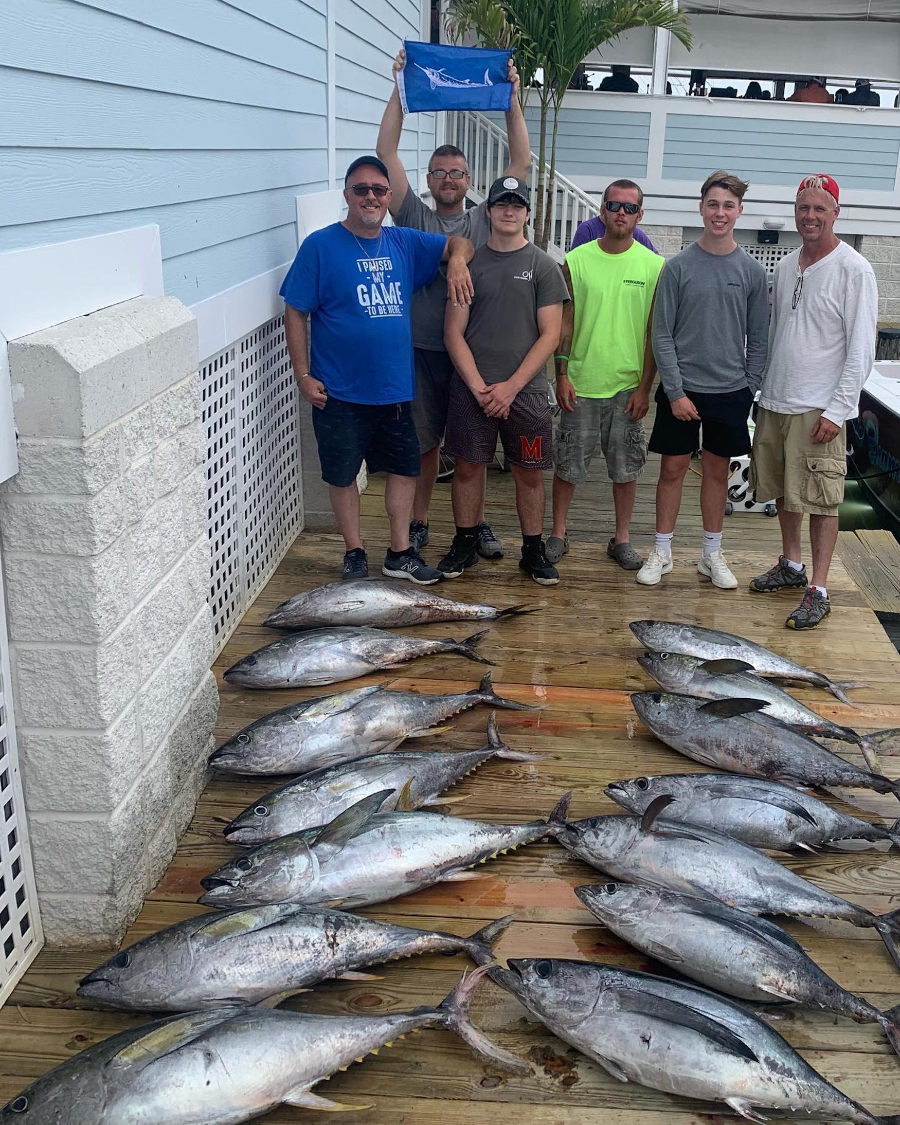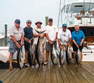 The crew on board the MARLI with Captain Mark Hoos at the helm had a good day with seven yellowfin tuna for the fish box. Photo by Sunset Marina.
