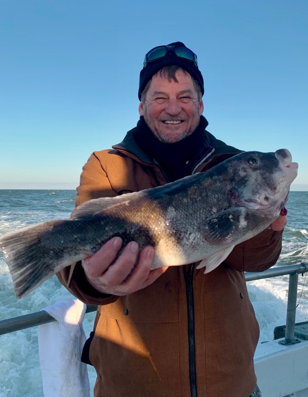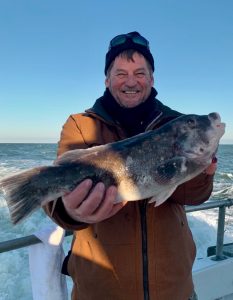 Caught a tiny handful of keepers including Jim Cobb from VA’s eastern shore’s pool winner (no pic) & Terry Feehley of Ocean View’s dinner; a fair number of tagable females (including the smallest yet this season – a 9 inch F tog that swam away with an ALS tag.)