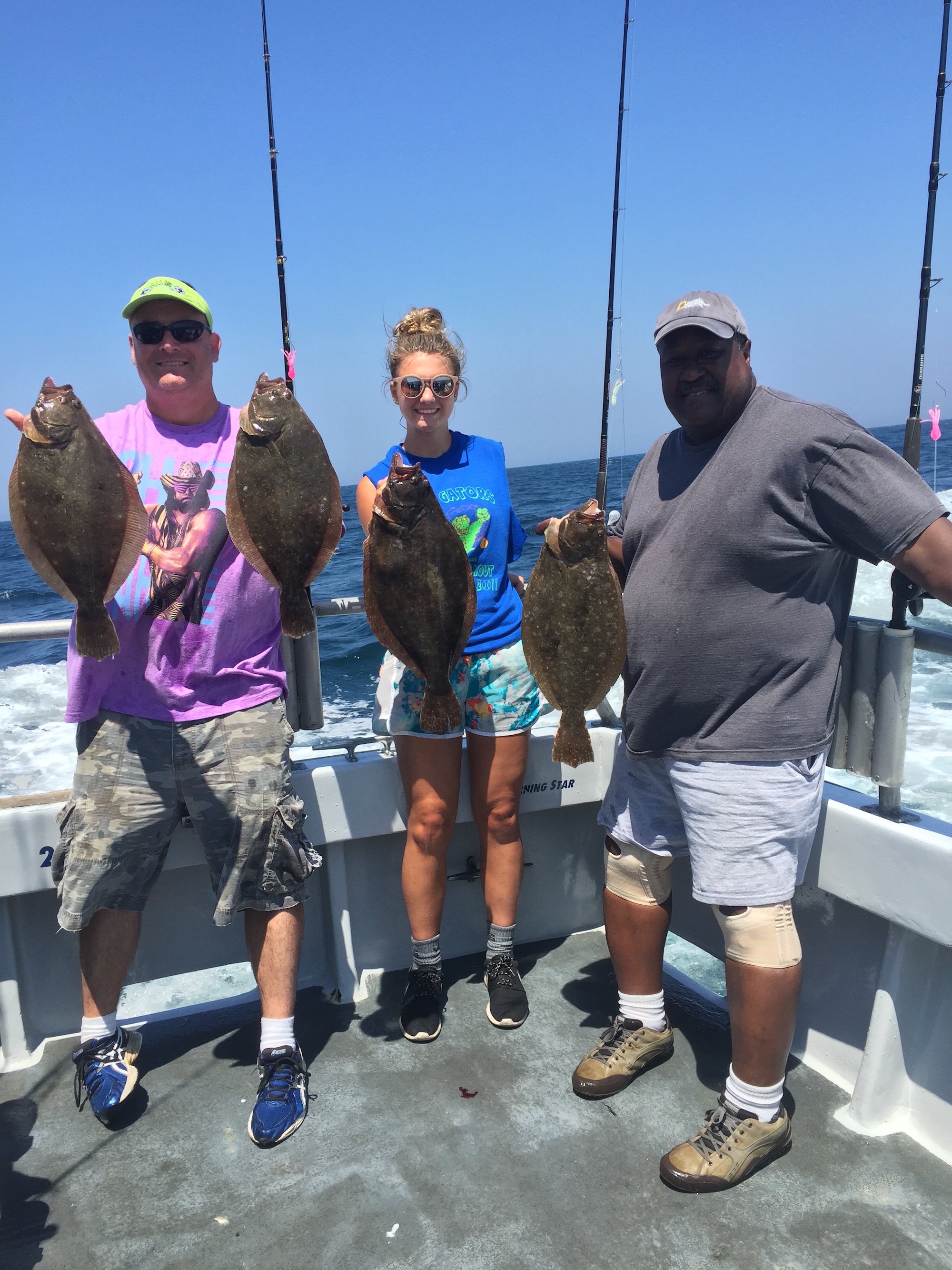 The Morning Star with Captain Monty Hawkins reported a good pick today with some nice flounder and sea bass. A 16-year-old girl put on a clinic today catching three keeper flounder and wining the fish pool. Randy Savage III had a limit plus one, and his friend who is a great fisherman, but will remain nameless flew the skunk flag…..he didn’t even have a throwback flounder. “Some other guy” also had a limit of flounder and there was one nice triggerfish.