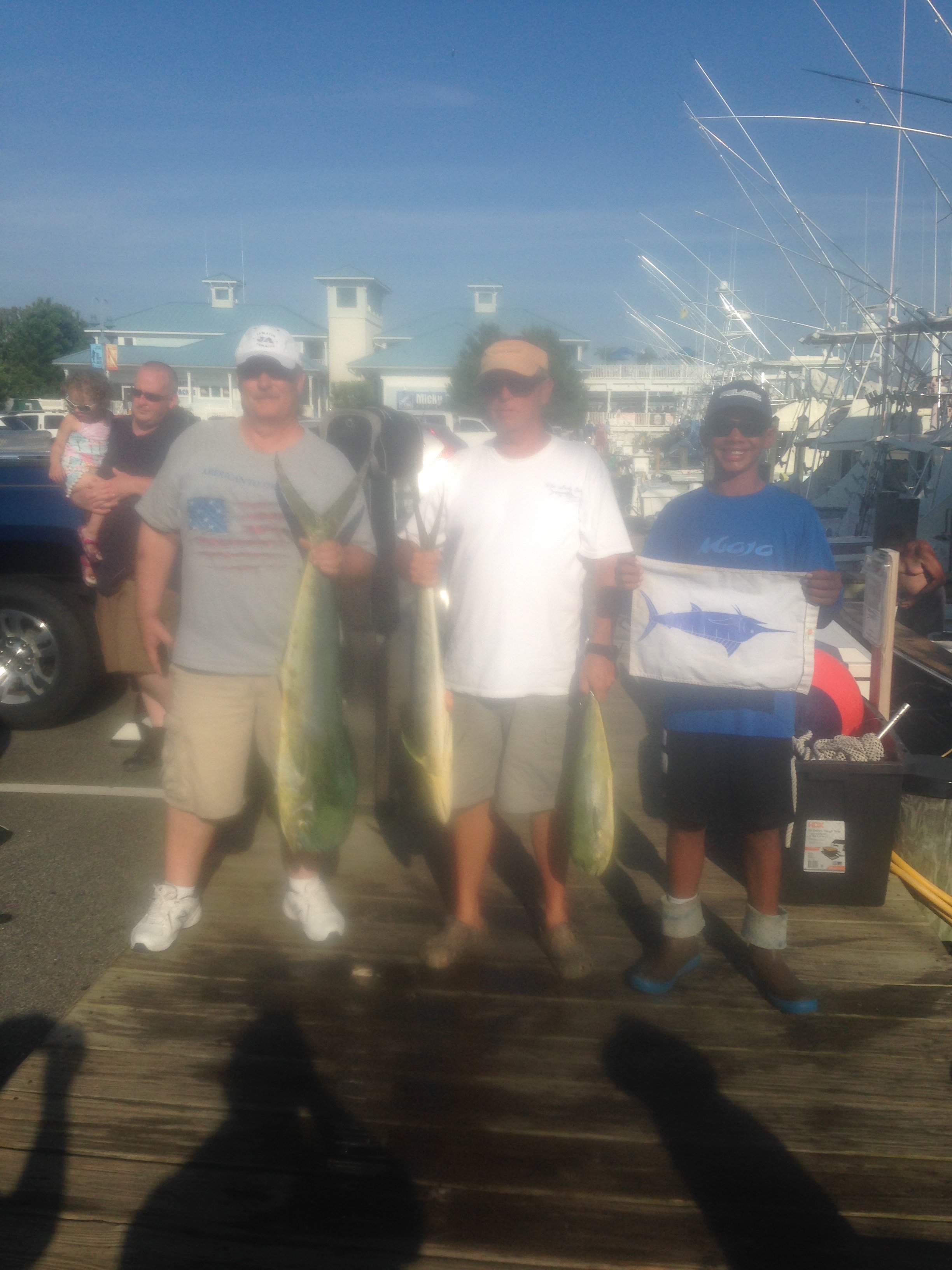 The Spring Mix II with Captain Steve Selander and mates Marshall Freng and Ayrton Pryor chunked Massey’s Canyon today and ended the day with two yellowfin and a nice mahi. Yesterday Spring Mix II fished 800-1000 fathoms of the Baltimore Canyon and released a blue marlin and caught three mahi. Ayrton Pryor, Scott Carstairs and Ed Ernst were the anglers.