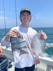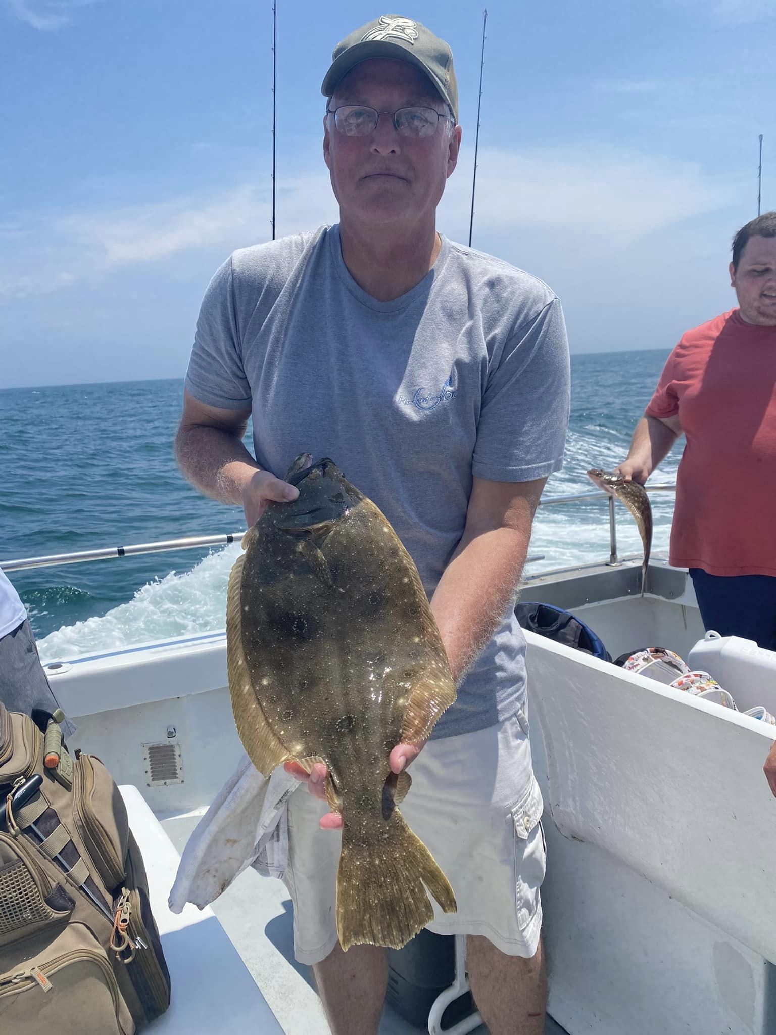 Captain Chris Mizurak of the Angler had to dodge a few of those storms today, but he still had some good fishing for his folks with sea bass, some flounder and even spadefish coming over the rail.