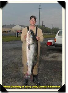 This would have smashed the current coastal division Maryland state record for striped bass of 57.2 pounds caught by Gary Smith back in May of 2006.