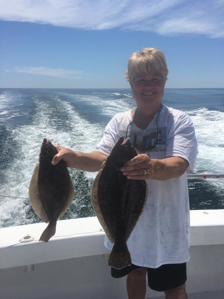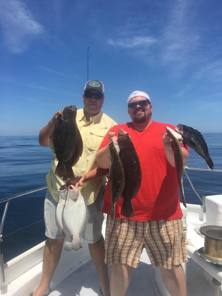 It was another good day of flounder fishing on the ocean going party boat Angler with Captain Chris Mizurak today. Captain Chris reported good fishing with a handful of limits around the rail and some decent fish upwards of three pounds. Fishing was so good that one guy had a double header of keeper flounder on the same drop. Angler also had one mahi come over the rail today too. For more information on our inshore party boat fleet you can check out all of our possibilities at FishinOC.com/inshore-party-fishing-boats