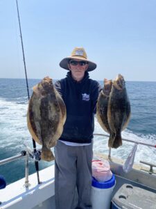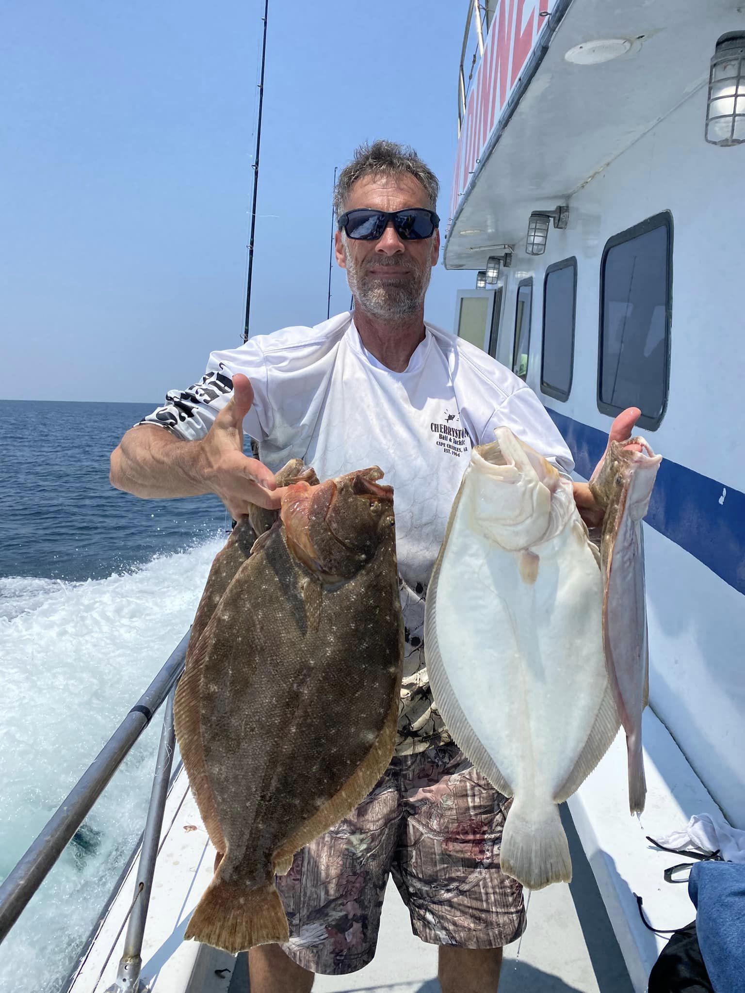 Captain Chris Mizurak of the Angler saw a mixed bag on today’s trip with some flounder limits for some anglers. The biggest flounder went just over 5 pounds.