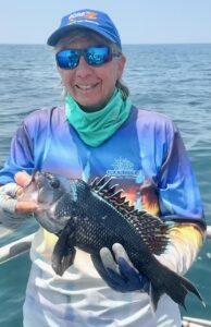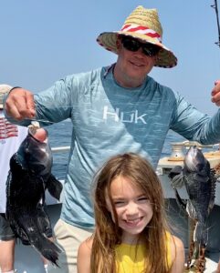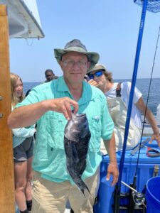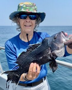 Nice weather this Sunday, especially considering today’s forecast earlier in the week was NE wind and rain – came sunny and calm instead. I’ll take it. Fish hear about it?Yeah No. Great Mercy. Mark fish – catch one. Mark FISH – catch a double keeper and a fluke. Top secret spot? Catch one. Like that all day. Oyyyy… A couple folks had the luck – Letty especially. She caught 5 beauties – while several men nearby boxed a goose egg.I’ll never understand it all.. First offshore bottlenose I’ve seen in a good while. Playful. Tomorrow we celebrate Pete’s passion for the sea.. Cheers, Monty