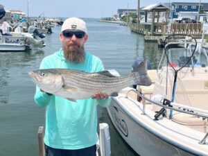 Luke Wrye caught his first ever keeper rockfish at the route 50 bridge today when this 29″er took his bait.
