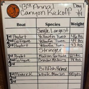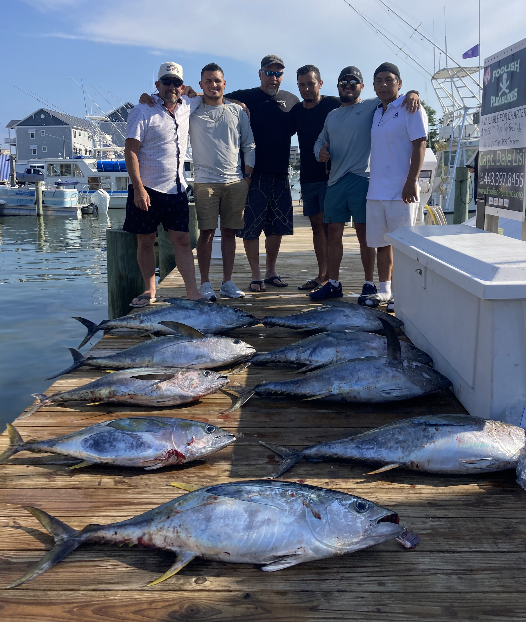 Captain Dale Lisi of Foolish Pleasures has had great trips the last two days putting a bunch of tuna on the dock for his customers. Yesterday Captain Dale put his folks on six yellowfin tuna from below the Poorman’s Canyon and today it was the same spot and nine more fish.