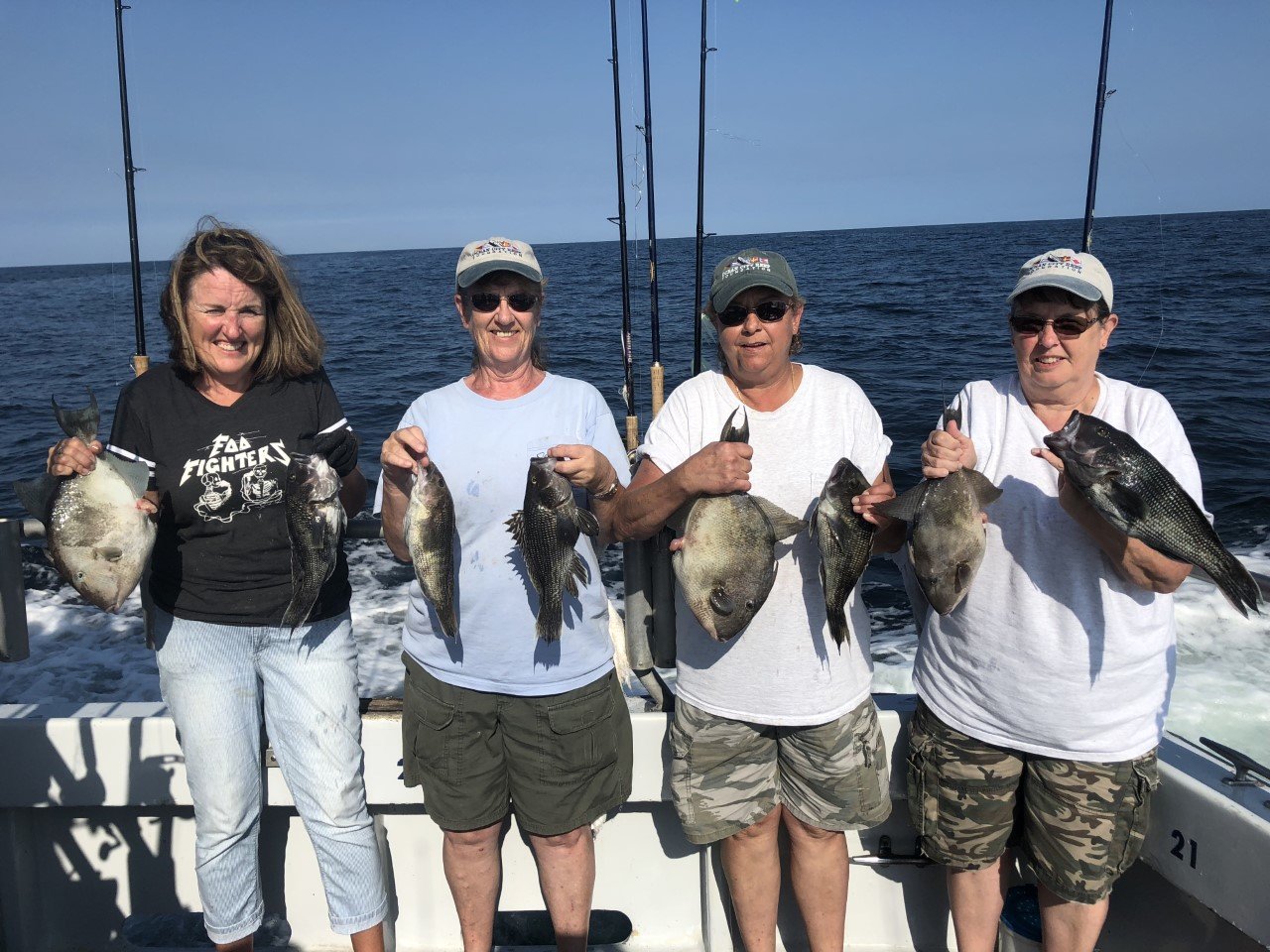 Captain Monty Hawkins of the Morning Star reported another good day of fishing on what seemed like Ladies Day on board. More than 1/2 of Captain Monty’s crew today was ladies and they had a great day with the fish. Donna McGinty of Carlisle, PA had the pool winning sea bass and some triggers. Others are Jeni Houser also of Carlisle, Pam Maus of Shippensburg, PA, & Debbie Harman of Hampstead, MD.