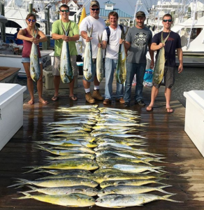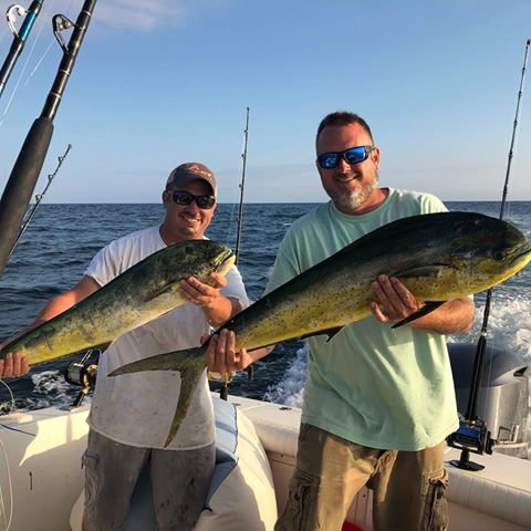 Captain Howard Todd took Brandon Burton and Shawn Riley south of the Washington canyon today and caught over 20 mahi with four or five nice gaffers in the mix.