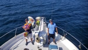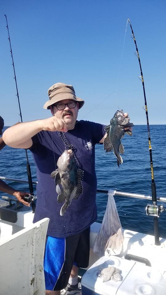 Captain Chris Mizurak of the Angler had a 10 hour trip on the ocean today and had a very successful day for his crew. Captain Chris reported a limit of sea bass for most clients up to 4 pounds, some flounder and triggerfish and a 46″ red drum that was tagged and released. The guys also plucked a big bundle of balloons out of the water even though Blume’s Balloon Round Up is in the books.