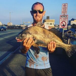 Morgan Mericle was fishing from the route 50 bridge over the weekend when he landed this beauty of a 26″ black drum.