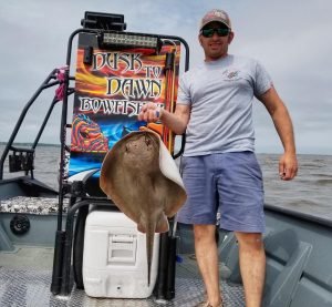 Captain Marc Spagnola of Dusk to Dawn Bowfishing was out on the bay today looking for clean water and he must have found at least a little bit. He also found this southern ray with a good shot.
