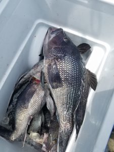 There were some other anglers out on the ocean getting in their sea bass fix and fishing seemed to be pretty good. Dutch Workman fished with Captain Monty Hawkins on board the Morning Star today and had some hefty sea bass for the cooler. It was a great day to be on a “gently rolling 8 second interview sea” today.