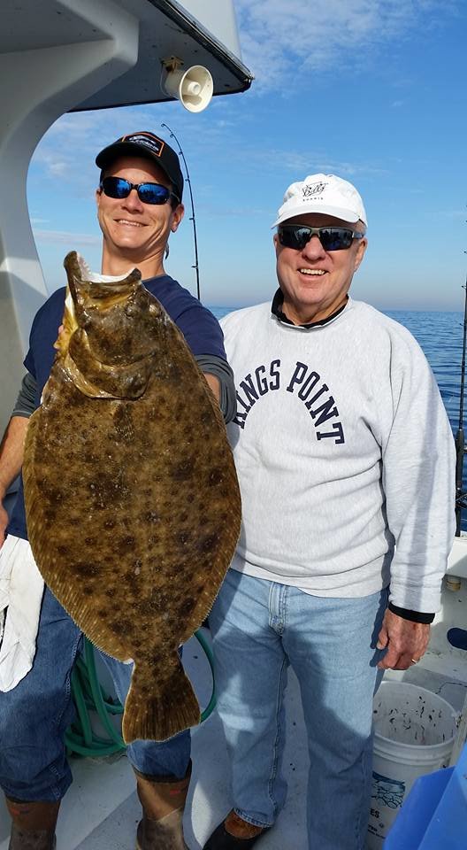 Captain Chris Mizurak on the Angler reported another good day of fishing some ocean structure. The crew had to weed through some throwback sized sea bass, but some folks had a good catch. There were some double header sea bass drops and some big bluefish, and Don was the fish pool winner with a doormat 29″, 9.5 pound flounder.