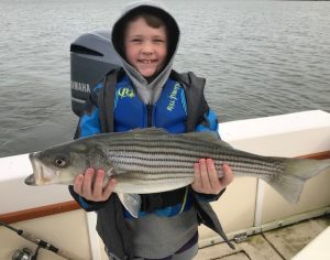 Young Grayson Wooldridge fished the pleasant weather this weekend with his dad John where they had some good catch and release rockfish action in the mouth of the St Martin’s River. The water was 50 degrees and pretty dirty, but the fish didn’t seem to mind. Grayson also caught some speckled trout on a Holiday trip to Florida.