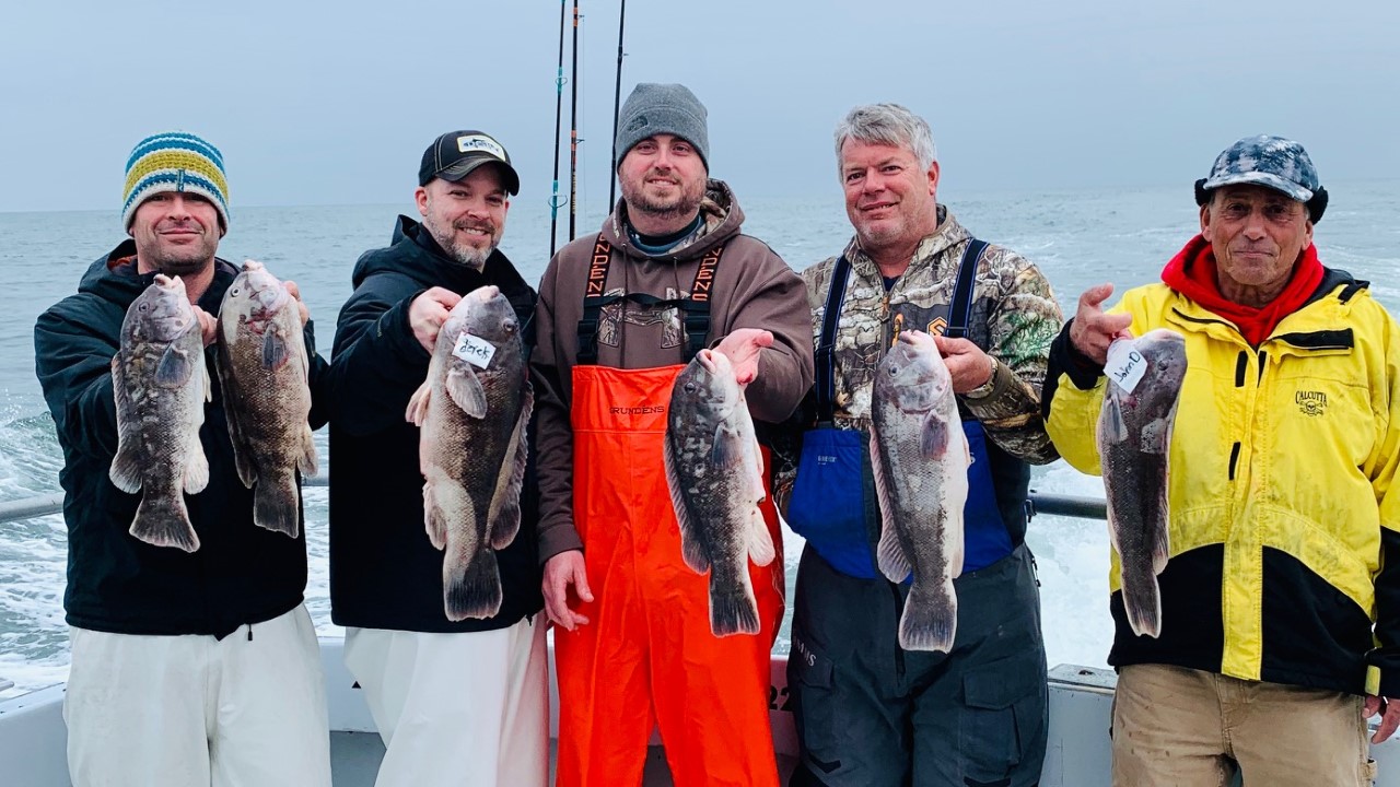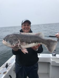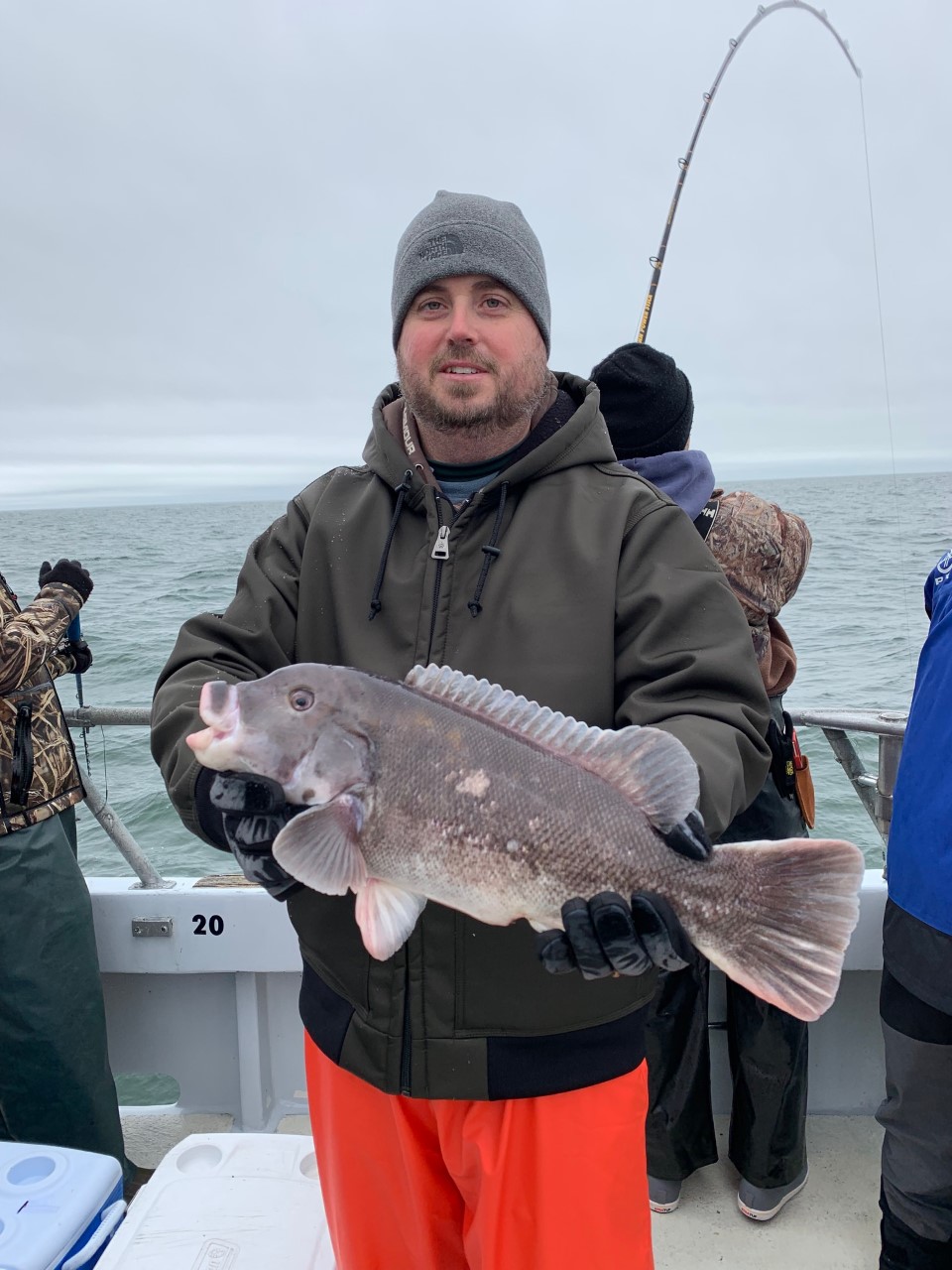 Captain Kane Bounds of the Fish Bound had a very nice day of toggin’ today. Mike had the largest fish of the day at 12.4 pounds, Karl managed a couple of nine pounders and the crew ended the day with their limit. Captain Kane also reported a lone, fat porgy.