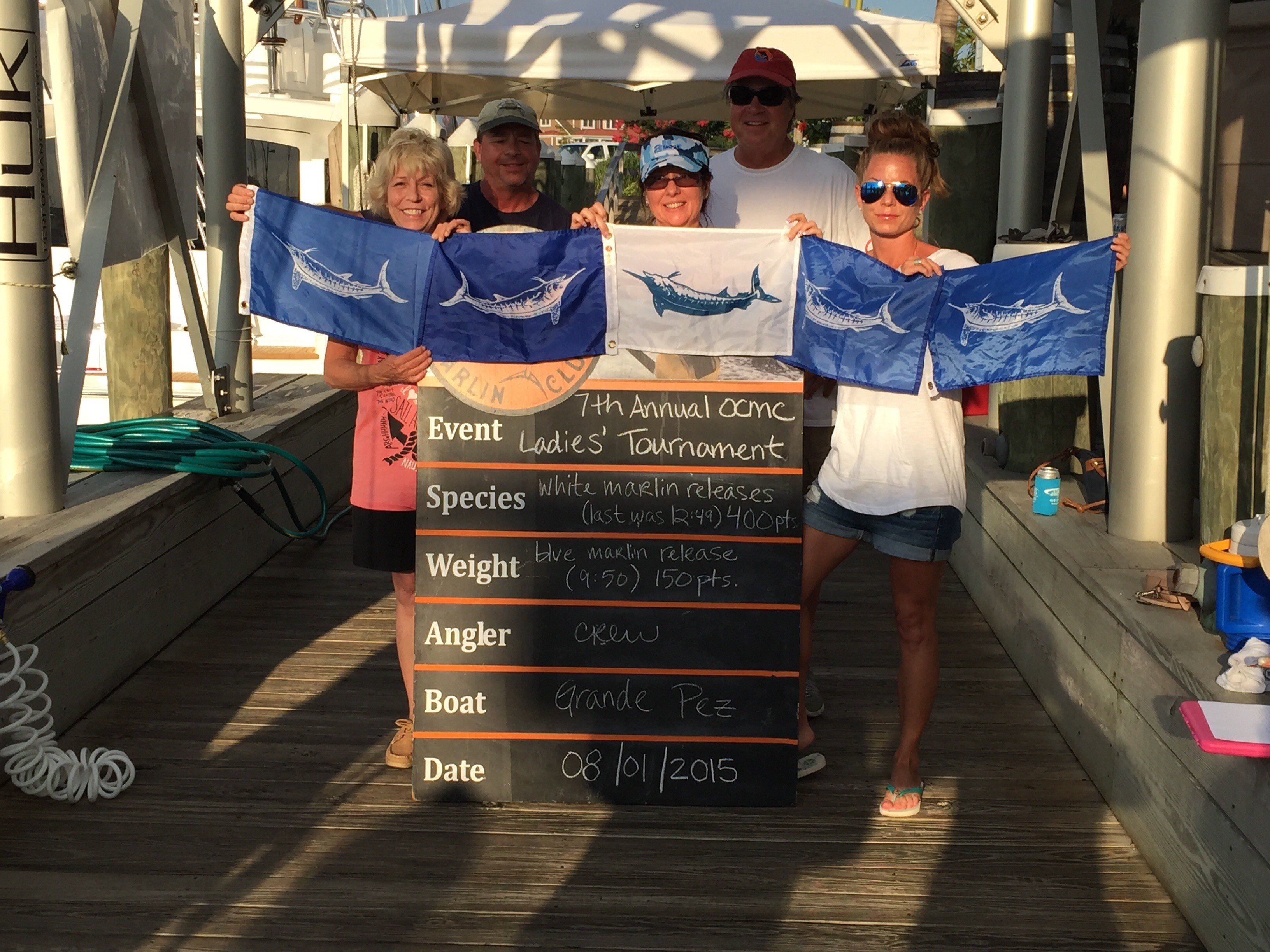 Talk about a great day of billfishing!! The ladies on the Grande Pez with Captain Pat Svehla released a blue marlin and four white marlin on the second day of the Ocean City Marlin Club “Heels and Reels” Tournament.