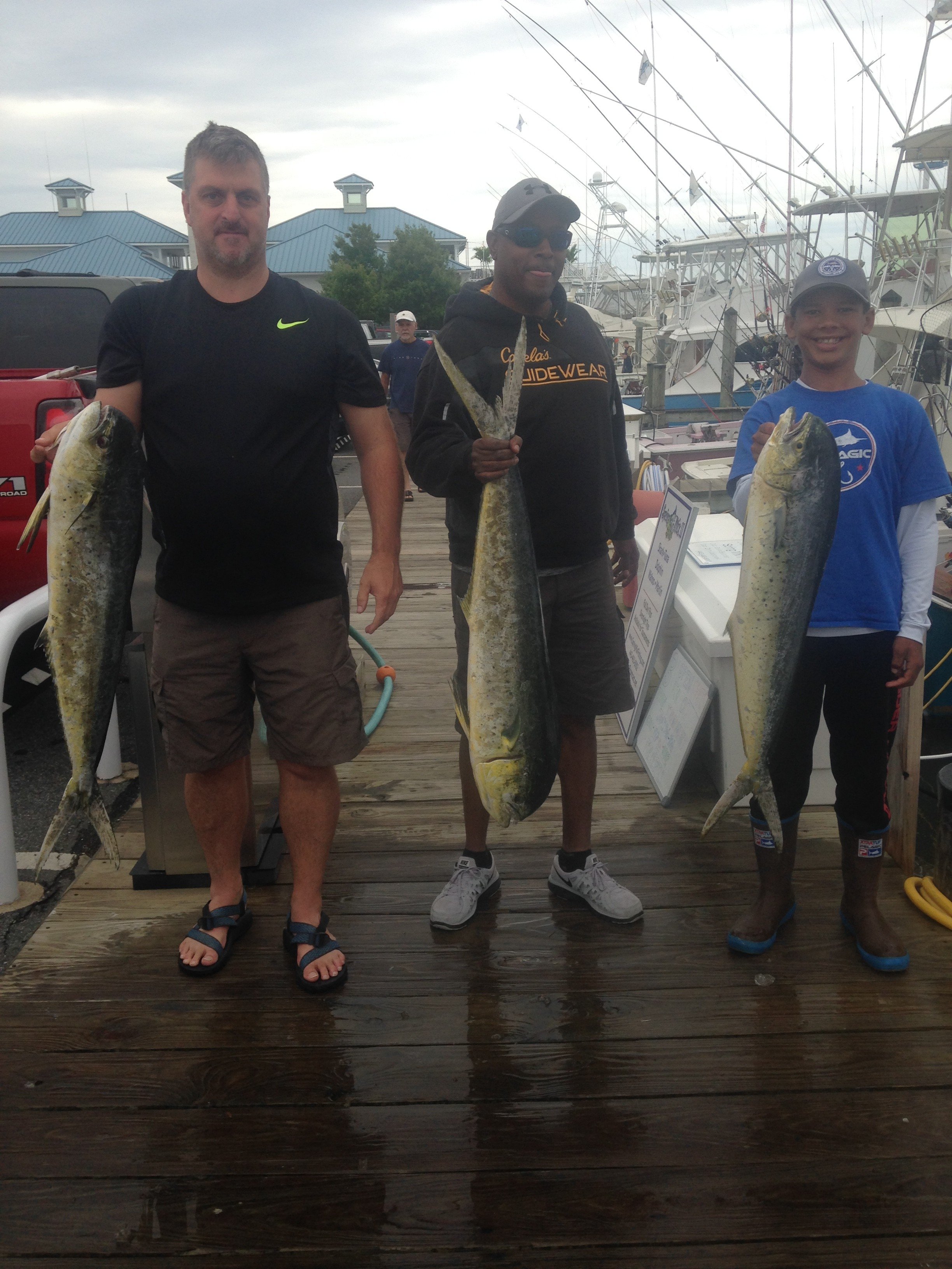 Outside of the tournament, Justin Sizemore and Calvin Jones fishing on the Spring Mix II with Captain Steve Selander and mates Captain Chris Watkowski and Ayrton Pryor had three nice mahi trolling the lumpy bottom.