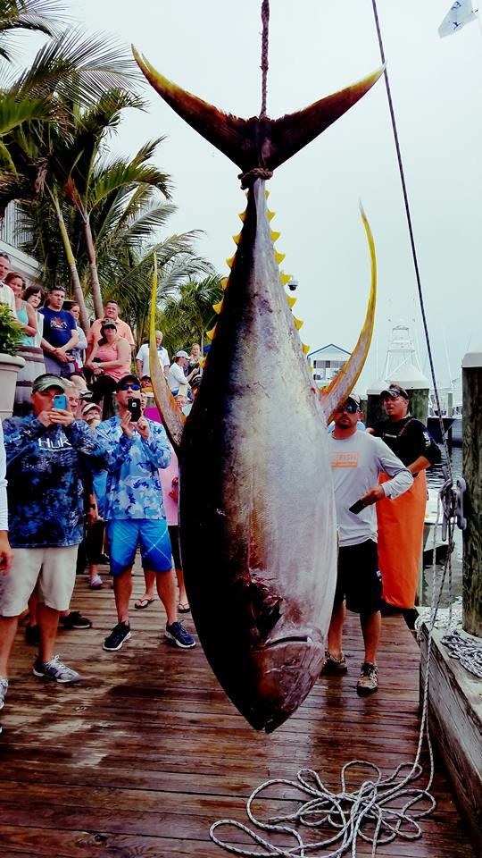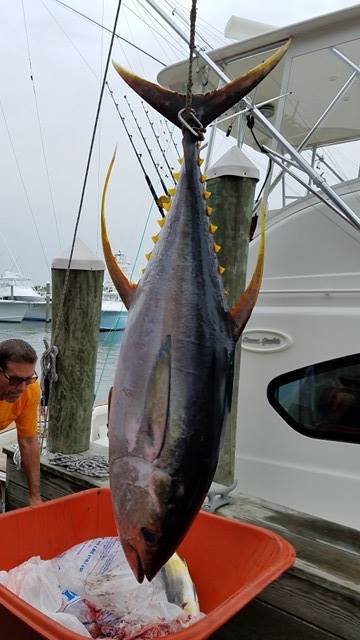 Fishing on day three of the Ocean City Marlin Club Canyon Kick-Off Tournament, angler Brian Stempowski caught a 125.8 pound yellowfin tuna on a TLD 25 after an hour and forty minute fight. Captain Frank reports that they got “real, real lucky” as the big Allison tuna almost spooled them on it’s initial run. The Brenda Lou was fishing in around 600 fathoms in back of the Rock Pile.