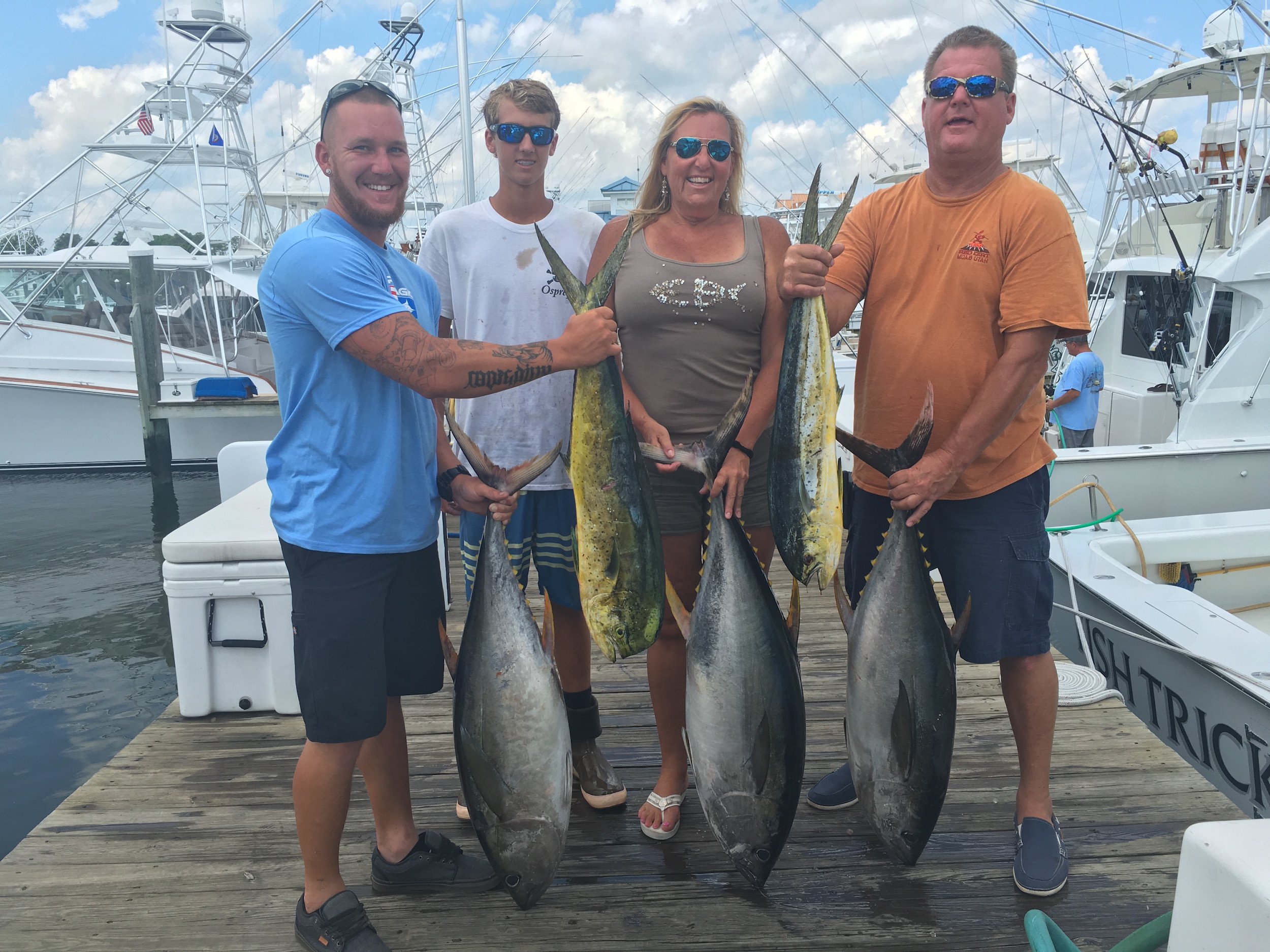 Nancy Kohl and her crew fished on Rhonda’s Osprey with Captain Joe Drosey and mate Sasha Lickle and had three nice yellowfin tuna and a gaffer mahi.