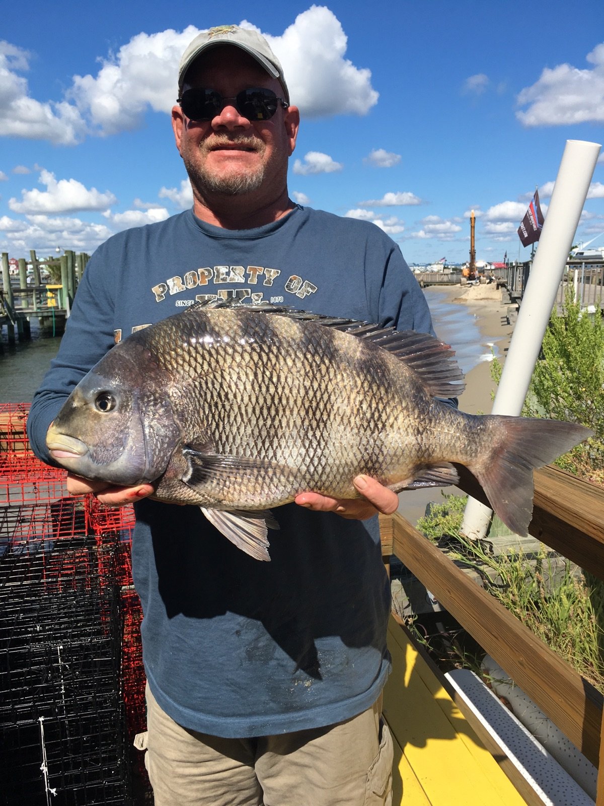 Bear down at the Oceanic Pier submitted this photo of Scott Harash who used a live sand flea to catch this citation sized 24 3/4″ sheepshead that weighed 11 pounds from the sea wall on the north side of the inlet.