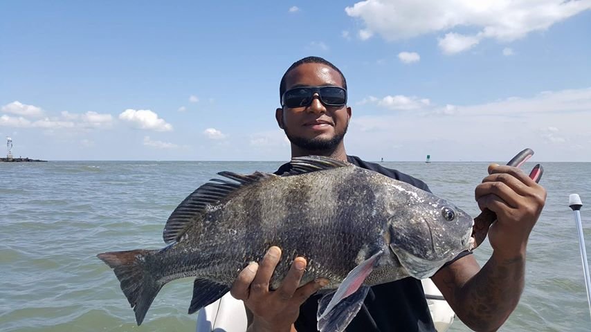 Away from the tournament there were some pretty nice fish caught in the inlet. Flounder fishing sucks pretty good right now with the dirty water conditions, but fishing has been pretty good for scent feeders like sheepshead and red and black drum. John Foreman found that there are some black drum at the jetties and this one decided to eat the wrong sand flea.
