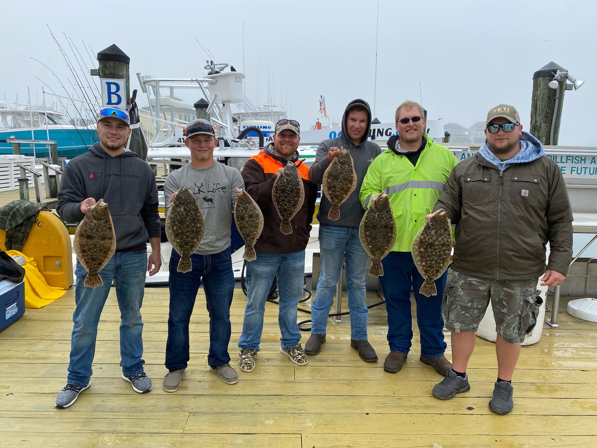 It was a rainy kind of crappy day for most of today and even though the rain stopped and the wind was light, we had to deal with some patchy, dense fog on the Ocean and around Ocean City. I tried to head to the route 50 bridge, but the fog was so thick on the bay I decided not to mess with it and just fished the Thorofare where it was pretty clear. I managed one 17″ flounder on the Fish in OC Deadly Double in white.