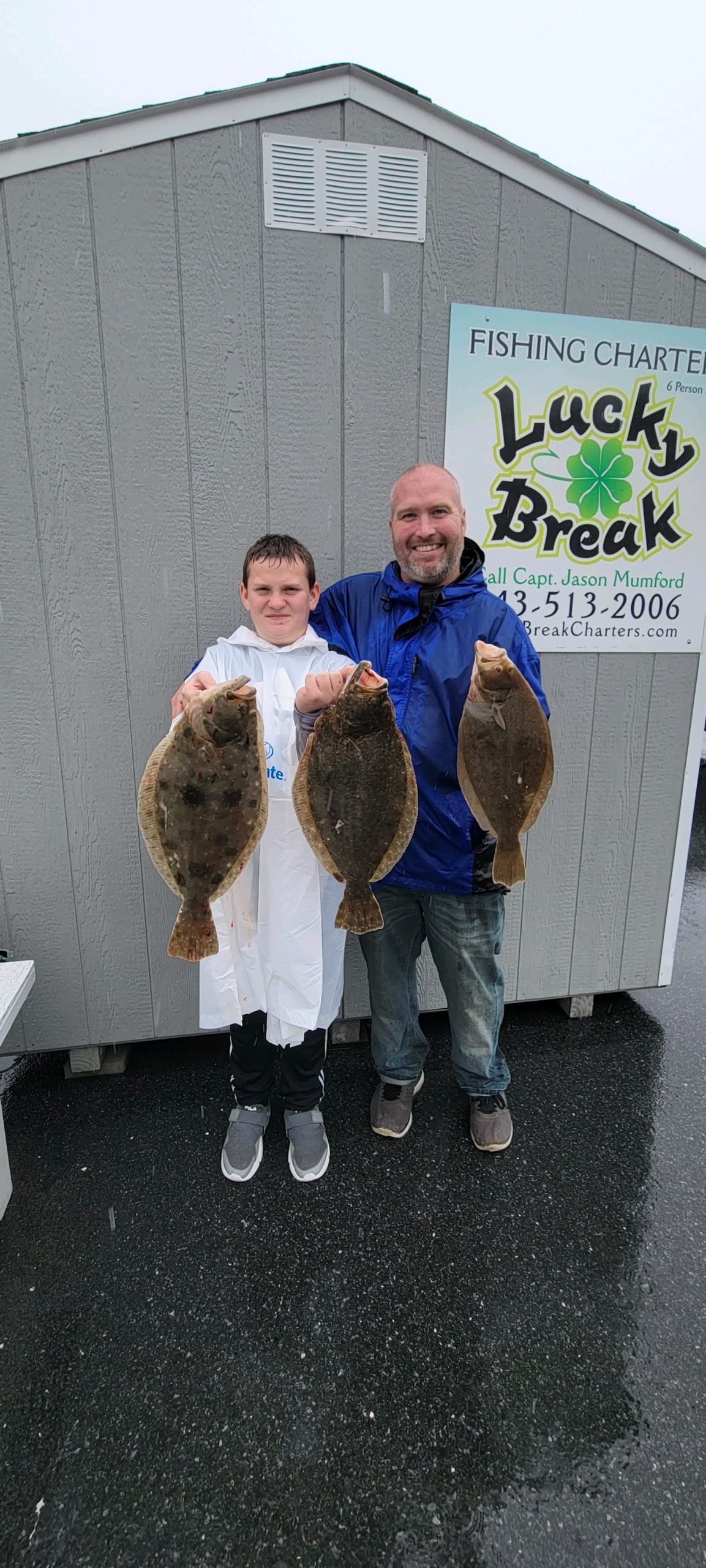 Back bay fishing for flounder was surprisingly good today considering the blow that we had last week. Captain Jason Mumford of Lucky Break Charters put his guys on three keeper flounder this morning with two 4 pounders included.