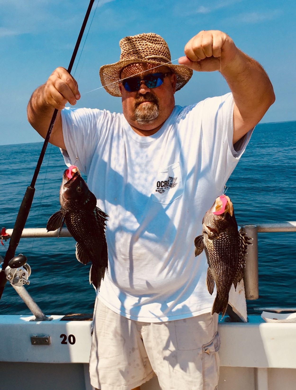 Dogone sea bass put on a feed today. Even had two clients, Gary Rantz of Schwenksville PA & Brian Haneschlager of Upper Falls MD, catch a 15 fish limit.