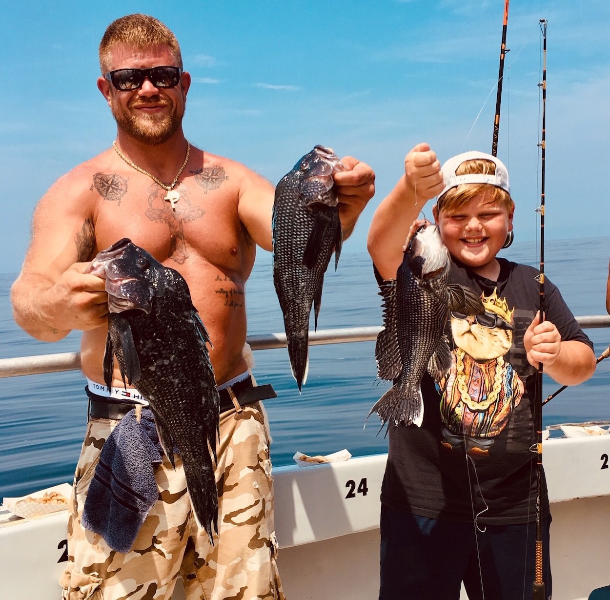 Young Ian Nodine & Dad, Rory, (blue shirts) show off some keepers.