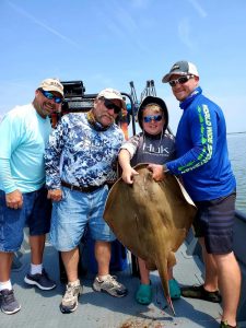 Captain Marc Spagnola of Dusk to Dawn Bowfishing found clean water and good shooting for cow nosed and southern rays in the south bay today.