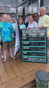 Wow……just Wow!!  When I heard that 389 of the 404 boats registered for the 46th Annual White Marlin Open were fishing today I knew it could be a busy day at the scales, but I didn’t think we’d be there an hour and 10 minutes later then we were supposed to be.  It was crazy!  I direct the livestream broadcast and I literally didn’t get out of my seat in front of the computer for over 5 hours.  It was fish after fish after fish and truly one of the best scales days that I can remember.  There are some nice fish on the board and some big money in some pockets……for now, but there are still 4 days to go.  Here’s who’s winning what right now.