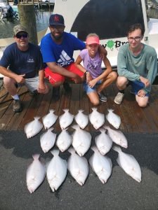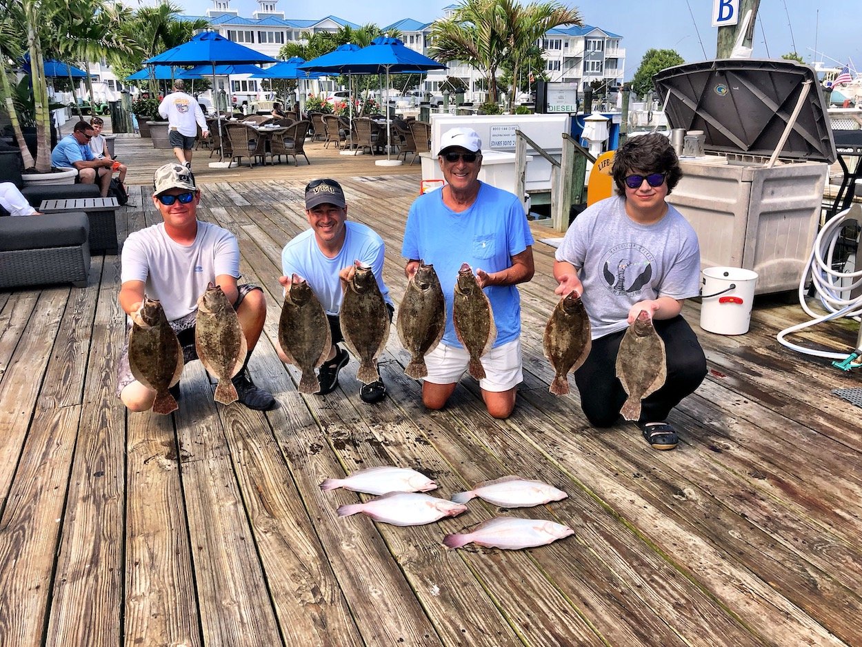 Conditions for flounder fishing in our back bays couldn’t be more perfect than it is right now. Clean water, sunny skies and high tide right in the middle of the day so anglers can catch the incoming and outgoing tide. If you try for flounder right now and don’t at least catch one I would be awfully surprised. The Fish in OC inshore fleet knows the ropes when it comes to flounder fishing and today they got into some of the best flounder fishing that I’ve ever seen in my 28 years in Ocean City. Captain Jason Mumford of Lucky Break had about the best of it with three trips today that all had keepers. This morning it was 12 keepers, followed by 16 keepers this afternoon, followed by four more keepers on the second afternoon trip for a total of 32 keeper flounder today. Truly unreal floundering!!