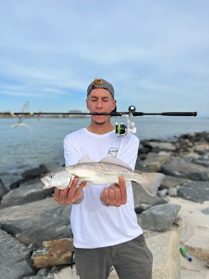 The Always Bent fishing crew has been enjoying this fall’s fishing so far. Up on the bridge it was a 26″ slot red drum and over on Assateauge it was some grey trout (weakfish) during the incoming tide.