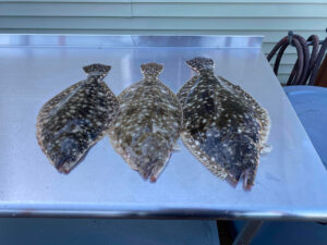 Caleb Powell, Bill Powell and Mike Shockley used Deadly Tackle Deadly Doubles to land three nice keeper flounder in the west channel today.