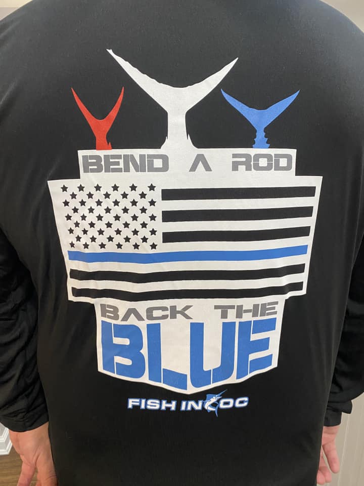 We had another really good weather day today, but tomorrow is gonna be a little different. The forecast is calling for wind and rain to develop tomorrow and last into Sunday sometime so ocean fishing might be a little rough through the weekend into Monday. Hopefully the weather holds off long enough for Harbor Day to be dry tomorrow. Stop by and see us in the vendor tent between 10 AM and 3 PM and get the new Bend a Rod Back the Blue tee shirt!