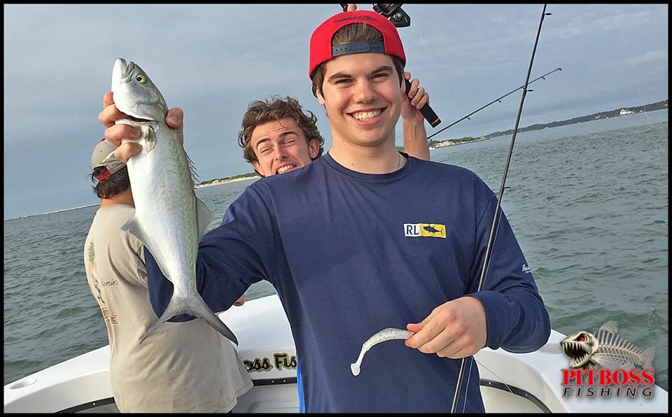 Another inshore charter partner, Pitboss Fishing had a busy weekend with anglers fishing the back bay as well. Captain Jeff Coats had awesome snapper bluefish action on the Bad Influence on Roy Rigs and spec rigs on three different trips this weekend. Captain Jeff also caught a great shot of the beautiful sunset we had this evening after the crazy cloud cover cleared.
