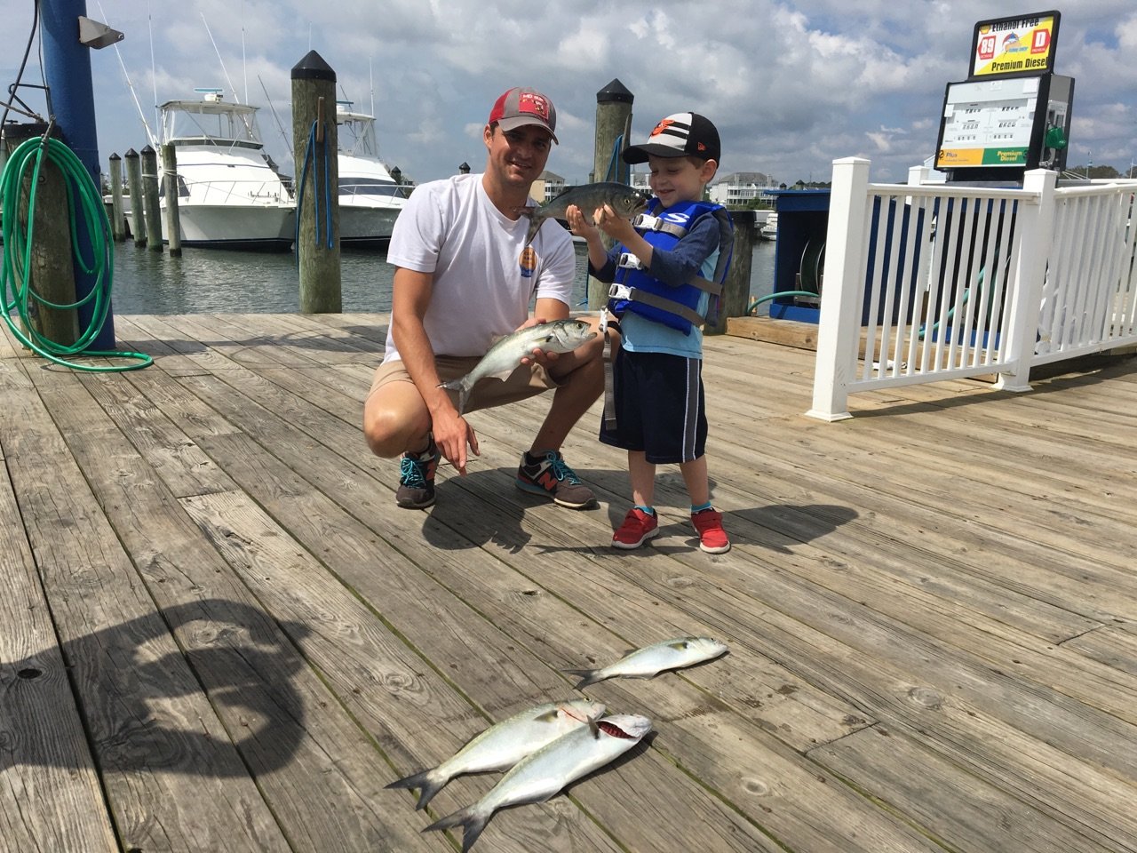 Captain John Prather on Ocean City Guide Service had two trips today that were very productive. Captain John started this morning with some casting at the route 50 bridge where he put his anglers on some hickory shad, short rockfish and bluefish. This afternoon it was a trip to the jetty where he put his party on lots of throwback tautog, short rockfish and bluefish. A couple of small, snapper bluefish was all that came home, but both parties had an awesome time with lots of action.