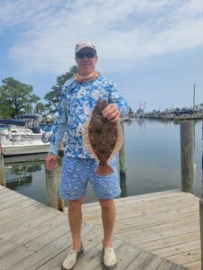 Lamont Hilbert used a bucktail with a Gulp to land this 19″ keeper flounder and 10 other throwbacks behind Assateague Island.