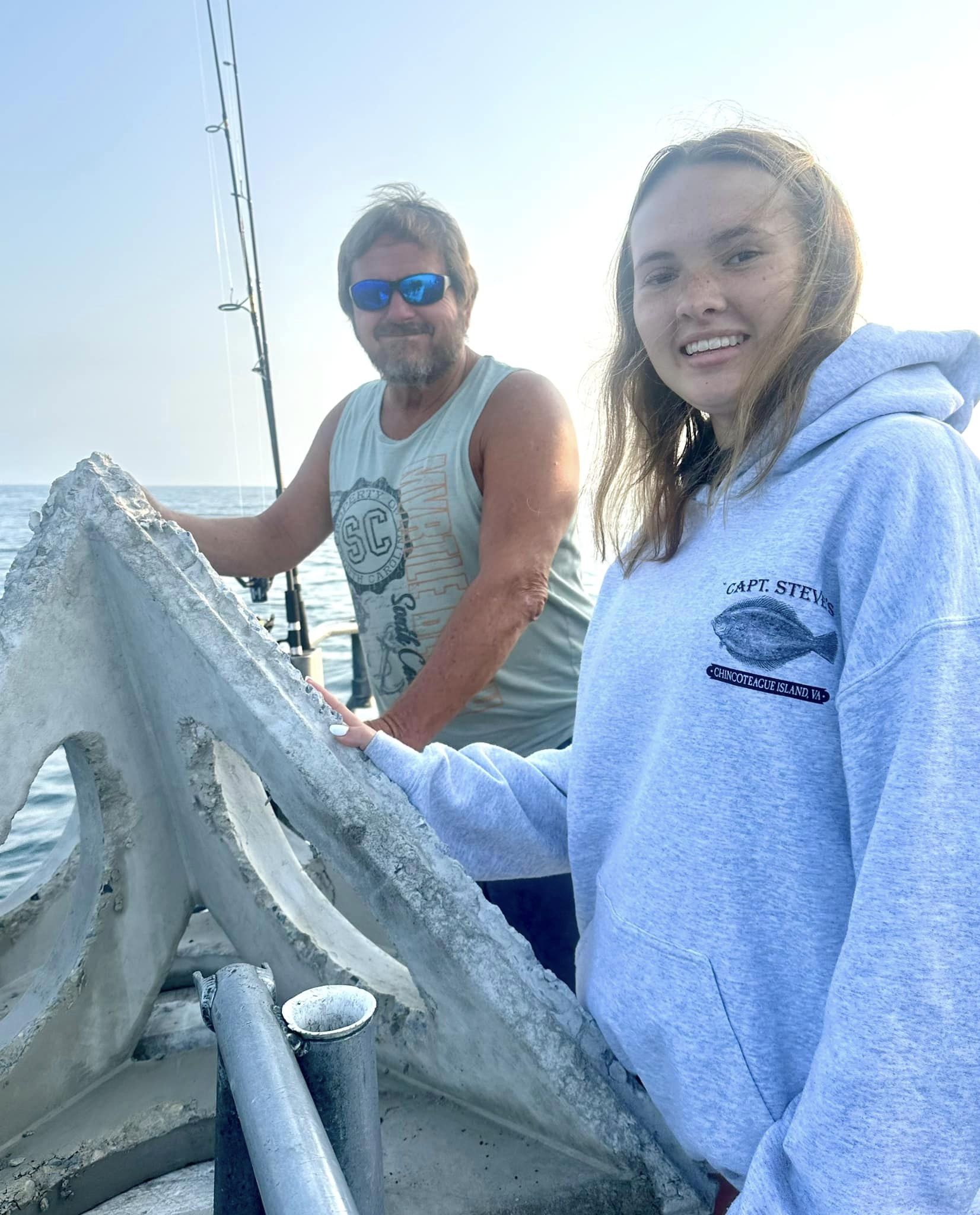 Jerry and granddaughter Destiny deployed a pair of pyramids made by Bear Materials & bolstered with bamboo at Capt Bob Gowar’s Memorial Reef.