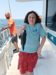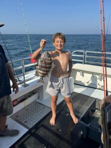 Captain Chris Mizurak of the Angler reported tougher fishing today, but he did have another youngin’ win the fish pool.