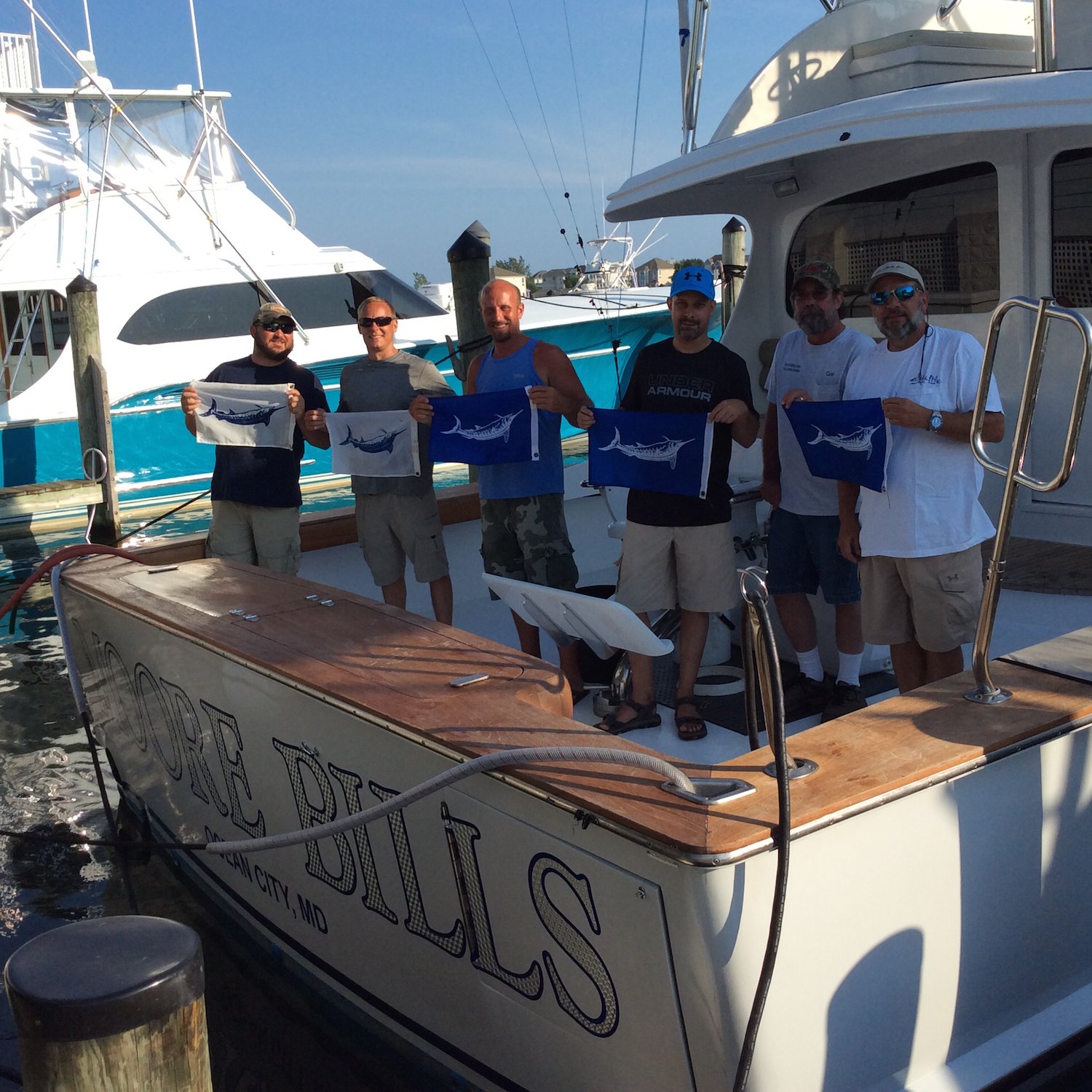 The Moore Bills had an awesome day offshore yesterday! Mate Steve Moore reported that they caught a double header blue marlin estimating one between 250-300 and the other between 300 and 350 pounds, and went three for four on white marlin. The one blue marlin ate a plug on an 80 and while clearing the spread the second ate a dink bait on the left flat line. It was the charters first billfish and that means great memories from their trip with Captain Rob Skillman.