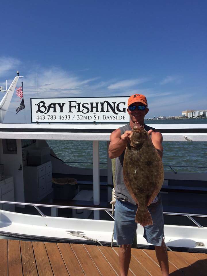 Enjoy a day of family fun, relaxation, bay fishing, or sightseeing in the Assawoman Bay of Ocean City, Maryland. The Calico Jack is a 32 passenger Coast Guard inspected Chesapeake Custom Headboat; offering daily fishing trips, private charters, private parties, and private sunset cruises. The Calico Jack Headboat offers 2.5 hour bay fishing trips. No fishing license is required and we fish for flounder, rockfish, sea bass, tautog, trout, and croaker. The Captain/owner is local to Ocean City, MD and will take you to some of the best fishing spots that Ocean City has to offer. The boat is designed to offer you the most comfortable experience with bench seating, restroom, and radio. The Calico Jack departs from 32nd street bayside, next to Jolly Roger Amusement Park. The Calico Jack heaboat is fun for all ages!