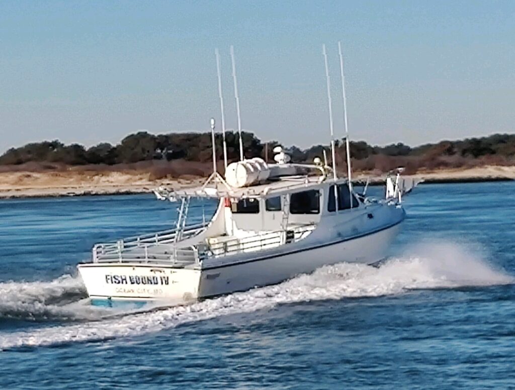 Fish Bound IV – 40 X 15 Evans.  Coast Guard Inspected for 18 Passengers.  Heated and Air Conditioned Cabin