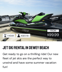 We bring the Sea Rocket experience to the Delaware Coast! At Sea Rocket, we pride ourselves on excellence in service, quality, and fun. Our rental boats range from 17 to 25 feet and can accommodate a wide variety of parties. Cruise around the intercoastal waters while enjoying the beauty of Rehoboth Bay! Our guided jet ski rentals deliver an incredible experience riding around a safe and designated riding area of the bay! If you’re ready to really kick your party up a notch, then our ultimate pontoon party boat is for you!