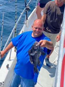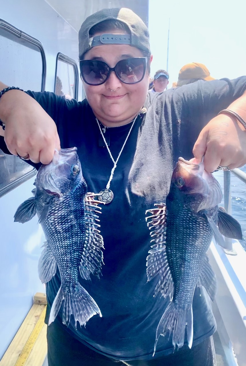 Anglers on board Chasin’ Tides Charters with Captain Chase Eberle laid the smackdown on a bunch of nice sea bass on today’s trip to the rip.