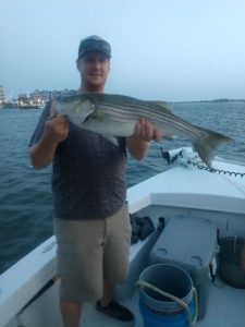 Back in the bay Captain Wayne Blanks of Bayside Guide Service found a good class of rockfish at the route 50 bridge landing several fish up to 27″ and one nice keeper that hit 30″.